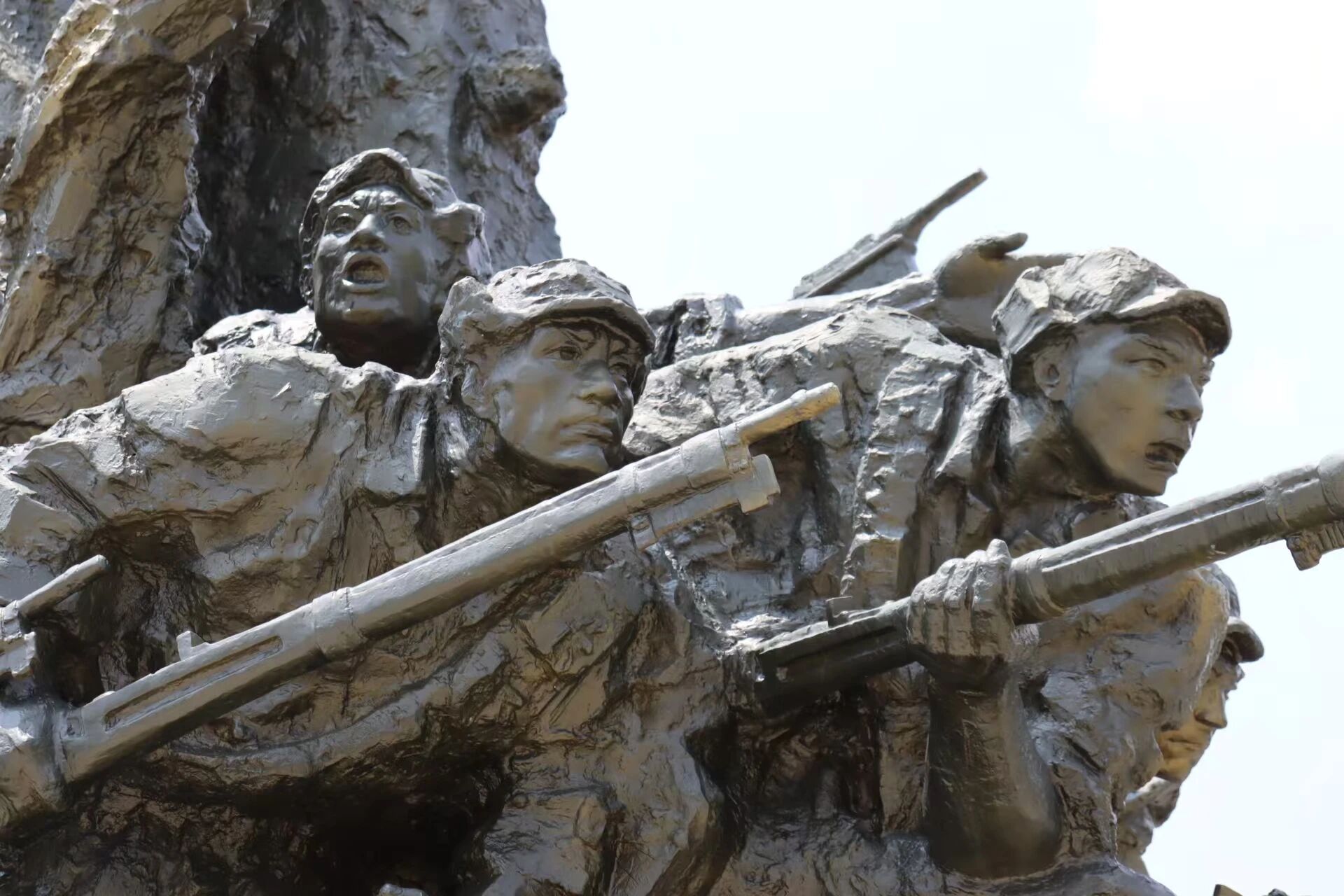 队员们沿着广场前行,来到总前委群雕前。群雕以全铜铸造,栩栩如生地展现了谭震林、陈毅、刘伯承、邓小平和粟裕五位总前委成员的形象。队员们在此驻足凝视,仿佛能感受到当年先辈们运筹帷幄、决胜千里的豪迈气概,心中对革命先烈的敬仰之情油然而生。