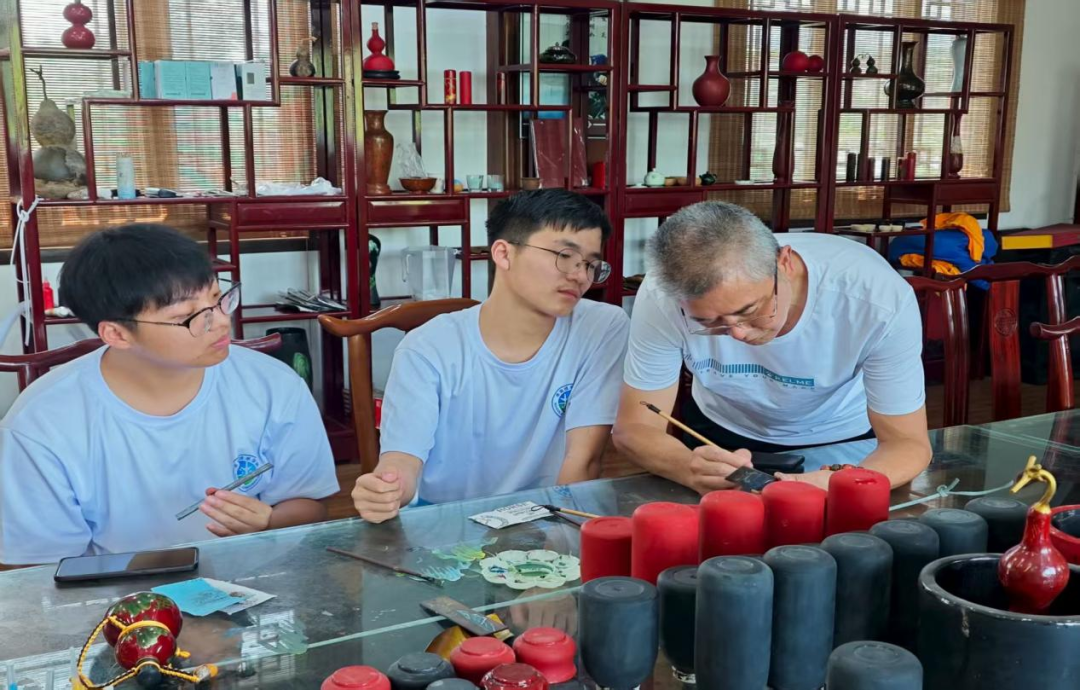 图为朱红志老师指导实践团绘画技巧(吴牧野供图)