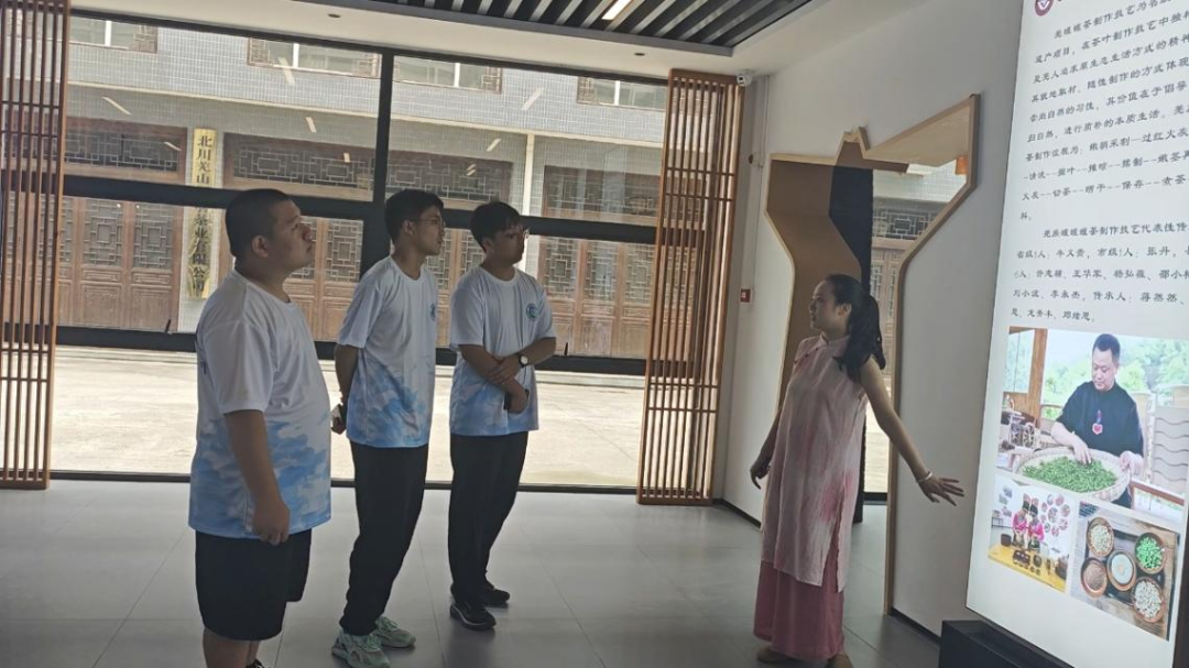 “晨露未晞时,茶芽带露香。” 在北川苔子茶文化展示中心,实践团成员跟着蒋然然老师了解苔子茶的种类、文化历史和完整的采茶流程。蒋老师说:“传承苔子茶不仅需要茶品,更需要优秀的人品。”每一代非遗文化传承人都是师傅深思熟虑后的选择,团队成员也应该为乡村振兴贡献微薄之力。