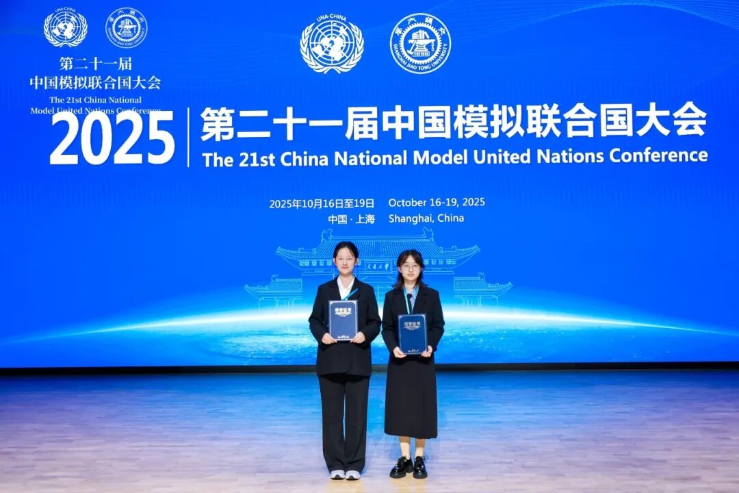 2025年10月16日至19日,第二十一届中国模拟联合国大会在上海交通大学成功举办,中国联合国协会副会长兼总干事胡文丽、外交部国际司陈凯参赞、上海交通大学党委书记杨振斌出席开幕式并致辞,联合国秘书长古特雷斯向大会发来贺信和视频贺辞。我校永利yl23411政治学与行政学专业2024级本科生邓勤琴、周凯玉、王妤鑫、李怡,在程铭、张梦时老师的指导下,组成yL23411永利集团代表团在本次大会上再创佳绩。邓勤琴同学获得杰出代表团奖项、李怡同学获得最具潜力奖项。这是我校代表团第四次在我国最高级别模拟联合国活动中斩获奖项,也是首次取得同时获评两大奖项的佳绩。